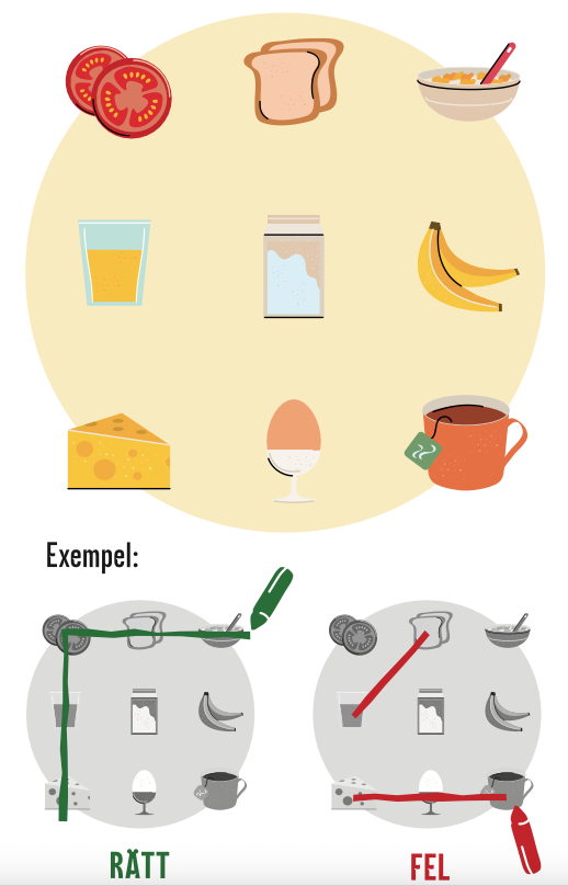Kan du – med bara fyra raka streck och utan att lyfta pennan från teckningen – stryka över och få med ALLA delar av frukosten?
