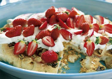 Recept på underbar marängtårta med fräsch yoghurt och hackade valnötter. Nötigt och frasigt för gottegrisar.