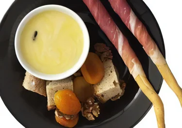 Smakrik ostfondue att doppa bitar av ditt tärnade favoritbröd i. Det är mycket gott att servera en kopp te till ostfondue.
