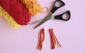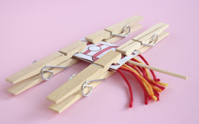 Det här behöver du: ett tomt mjölkpaket, sax, färgpennor, hobbylim, garn i olika färger. En grillpinne, ett sugrör och och några klädnypor.