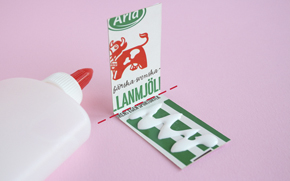 Klistra fast raketen på mjölkpaketsbiten och låt torka.