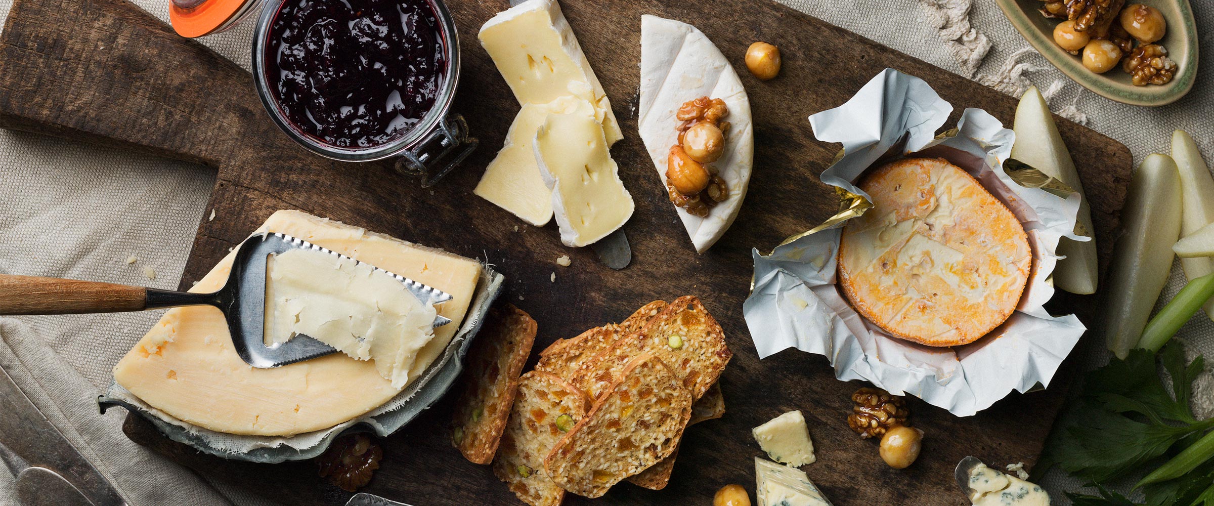 Vi har ett sortiment av många högklassiga ostar, från lagrade ostar av världsklass, till Sveriges mest kända blåmögelostar. Här har vi samlat goda tillbehör till ostbrickan.